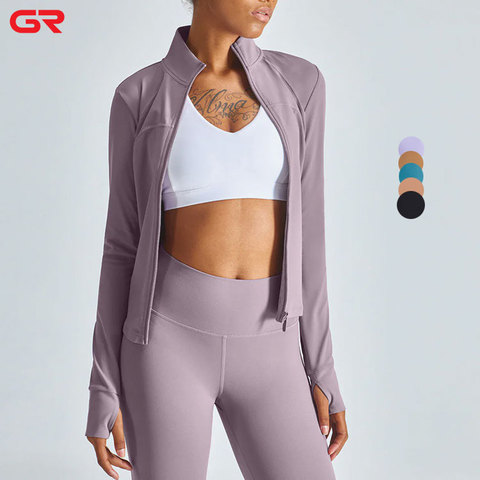 Women's Slim Fit Full Zip Nylon Gym Wear Breathable Workout Fitness Yoga Jacket Long Sleeves Nude Print Feel Naked Comfortable