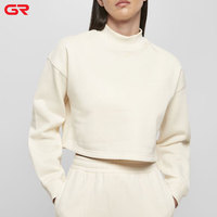 Women's Custom Embroidered Cropped Sweatshirt Breathable Cotton Polyester Fleece Drop Shoulder Crew Neck Long Solid Knitted